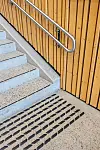 GODT MERKET: Sorte, opphøyde trappeneser og farefelt før første trappetrinn.