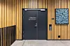 INGEN TVIL: Sort dør og lys vegg gjør det enkelt å oppdage inngangen.